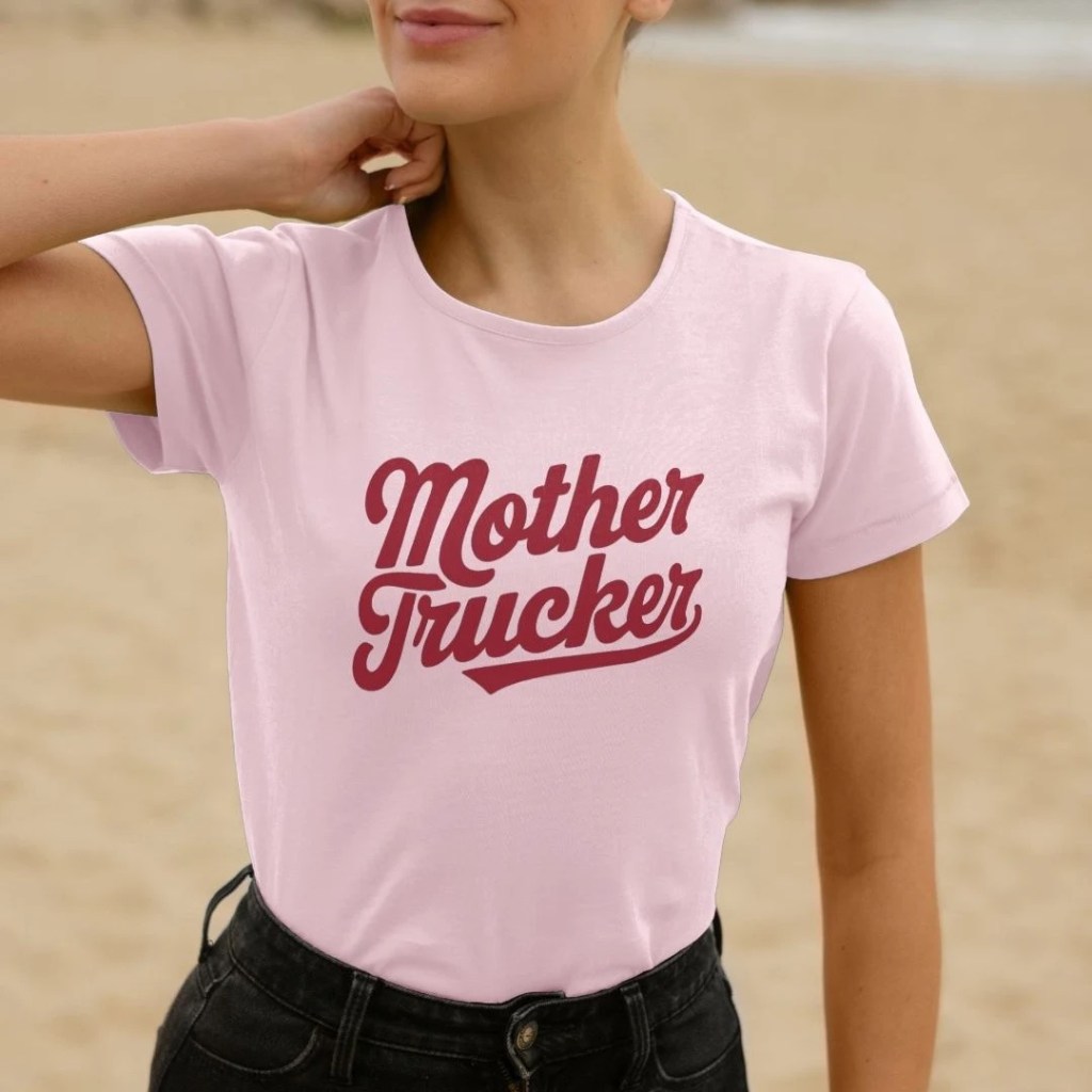 For all the queens of the cab, our “Mother Trucker”women’s crew neck t-shirt is a stylish nod to your road warrior spirit. Made from soft, high-quality cotton, this tee combines comfort and durability—perfect for long hauls or relaxing days off.